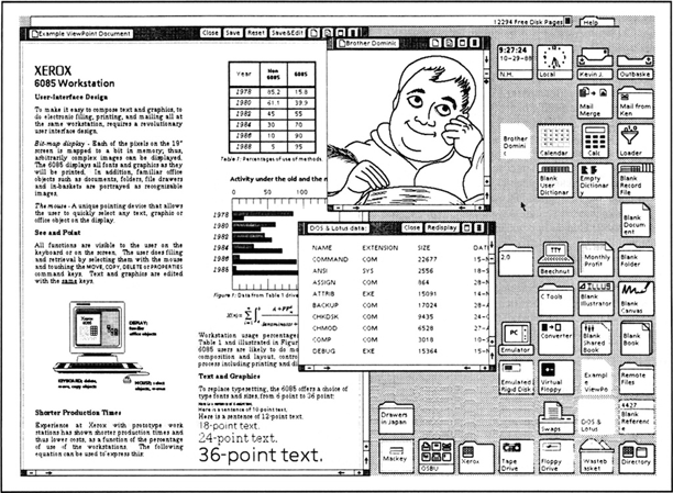 Η γραφική επιφάνεια εργασίας όπως είναι διαθέσιμη σε πολλούς εμπορικούς επιτραπέζιους υπολογιστές λίγο διαφέρει από εκείνη που είχε ο υπολογιστής Xerox Star που δημιουργήθηκε στο ερευνητικό κέντρο PARC. Η γραφική επιφάνεια εργασίας σε συνδυασμό με το ποντίκι και το πληκτρολόγιο αποτελεί έναν ιδιαίτερα αποδοτικό τρόπο εργασίας με επεξεργαστές κειμένου, φύλλα εργασίας, και προγράμματα επεξεργασίας εικόνας και γραφικών. Δεν είναι τυχαίο ότι η δημιουργία της γραφικής επιφάνειας εργασίας έγινε από το ερευνητικό κέντρο PARC της εταιρείας XEROX κατά τη διάρκεια μελέτης και αυτοματοποίησης της εργασίας σε εκδοτικούς οργανισμούς. Αξίζει να δούμε λίγο πιο προσεκτικά τα χαρακτηριστικά του Star γιατί θα καταλάβουμε καλύτερα τους λόγους που η γραφική επιφάνεια εργασίας πήρε αυτήν τη μορφή και όχι κάποια άλλη η οποία θα ήταν αποδεκτή, αν το πλαίσιο ανάπτυξης και οι ανάγκες των χρηστών ήταν διαφορετικές.