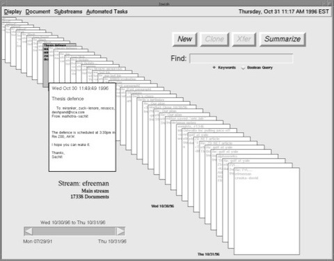 Η οργάνωση και η αλληλεπίδραση με την πληροφορία σε χρονολογική σειρά παρουσιάστηκε για πρώτη φορά το 1996 στο διδακτορικό του Ερικ Φρίμαν σε μια διεπαφή με τίτλο Lifestreams περισσότερο από μια δεκαετία πριν γίνει ο βασικός τρόπος διάδρασης στα ψηφιακά κοινωνικά μέσα όπως τα Twitter, Facebook.