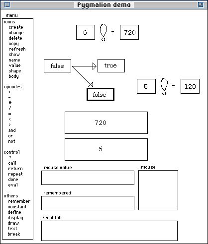 Το σύστημα Pygmalion, στα μέσα της δεκαετίας του 1970, ήταν εκείνο που έδωσε τον ορισμό για τα εικονίδια, αλλά κυρίως ήταν το πρώτο που επέτρεψε τη δημιουργία λογισμικού με βάση την τελική συμπεριφορά και το αποτέλεσμα που πρέπει να έχει ένα πρόγραμμα υπολογιστή (αντί της κυρίαρχης πρακτικής που ήταν να δίνουμε οδηγίες στο πρόγραμμα για το τι ακριβώς να κάνει).