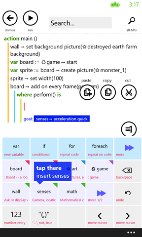 Το πειραματικό περιβάλλον ανάπτυξης Touch Develop είναι σχεδιασμένο ώστε να δουλεύει σε έξυπνα κινητά, οπότε έχουμε ξανά τα πλεονεκτήματα που δίνει η ανάπτυξη και εκτέλεση πάνω στην ίδια πλατφόρμα.